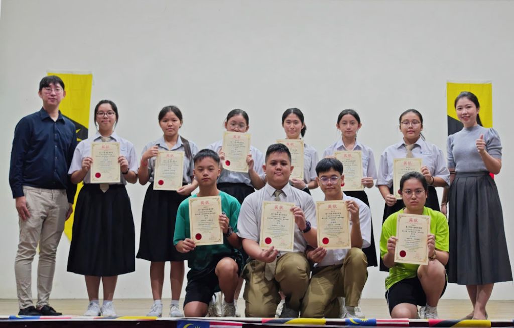 (古晋23日讯)石角民立中学于举行 "美丽砂拉越,我的骄傲"722美术比赛的颁奖典礼,以表扬学生在绘画创作中的才华与努力。此次比赛以砂拉越文化与景色为主题,鼓励学生通过画笔表达家乡之美,进一步了解砂拉越独立日的历史意义。