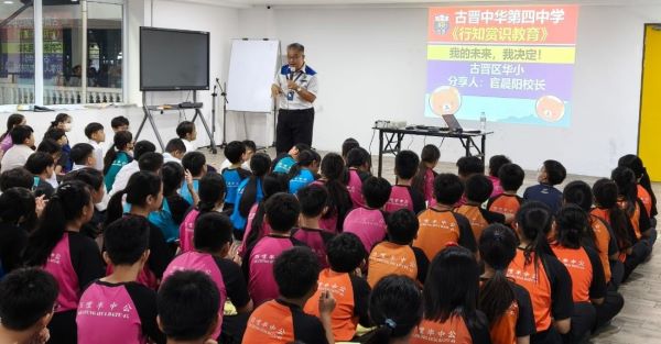 官校长在为四中招收2026年度初中一新生时,鼓励华小的小六生们勇敢为自己发声,向父母亲争取选择一所最适合自己学习与成长的中学,欢迎加入温暖的四中赏识大家庭。