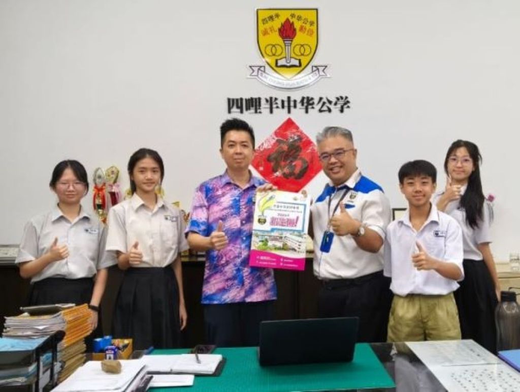 (古晋10日讯)古晋中华第四中学(四中)校长官晨阳到古晋四哩半中华公学,与该校六年级同学们分享四中孩子们快乐学习、快乐成长故事,表达四中办学愿景是一座走向世界的梦想乐园!