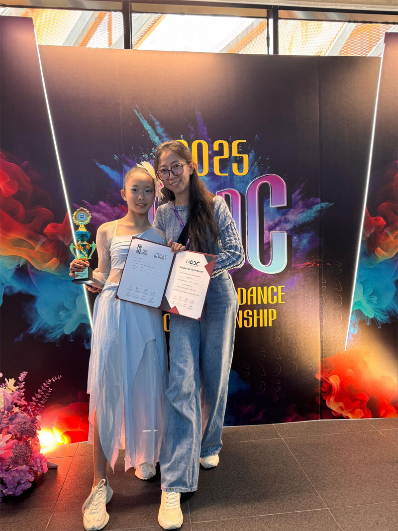本次国际赛事涵盖芭蕾、现代舞、街舞、爵士、当代舞、中华民族舞等多个舞蹈类别,竞争激烈,高手云集。Mine Dance Studio 由杨爱丽老师亲自带队,率领7位精心选拔的优秀舞者勇敢登上国际舞台,她们更是首次挑战独舞项目,最终以坚定的意志与无限的热情取得亮眼成绩,充分展现了他们超越年龄的舞蹈潜能。