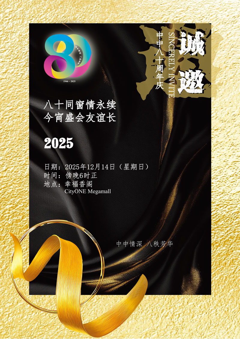 八十年,是历史的印记;一夜重逢,是情谊的延续。让我们携手再聚,共庆中中八秩芳华,共谱华教新篇章。