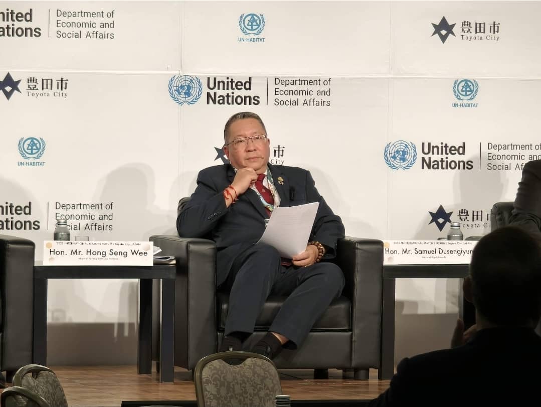 (日本丰田市15日讯)古晋南市市长拿督黄鸿圣受联合国区域发展中心(UNCRD)及联合国经济与社会事务部(UN DESA)邀请,于2025年10月14日至16日在日本丰田市举行的“2025年国际市长论坛”上分享古晋市在推动循环经济与可持续发展的经验。
