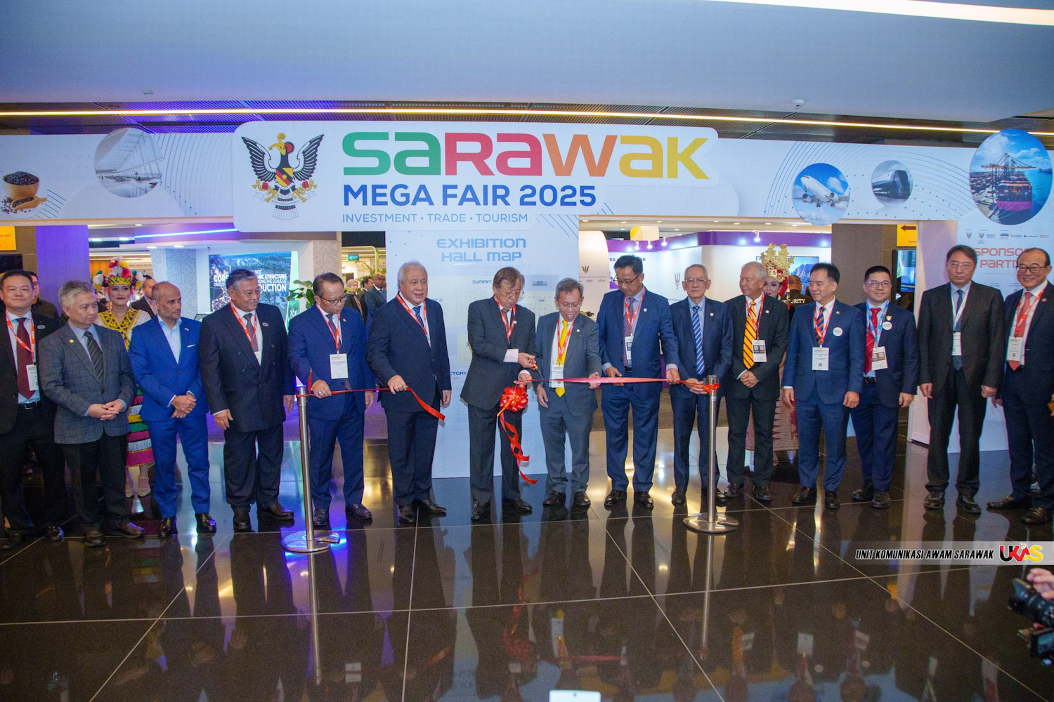 出席嘉宾包括砂三位副总理拿督阿玛道格拉斯、拿督阿玛阿旺登雅及拿督阿玛沈桂贤、砂州议会议长丹斯里莫哈末阿斯菲雅、砂内阁部长、州秘书拿督阿玛莫哈末阿布巴卡、STATOS主席丹斯里莫哈末慕斯希迪,以及新加坡政府代表等贵宾。