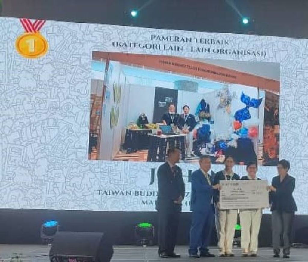 在开幕礼上也颁发中、小学创意展奖、而古晋慈济活动其他组别冠军奖以及今日在现场展示最佳摊位奖等。