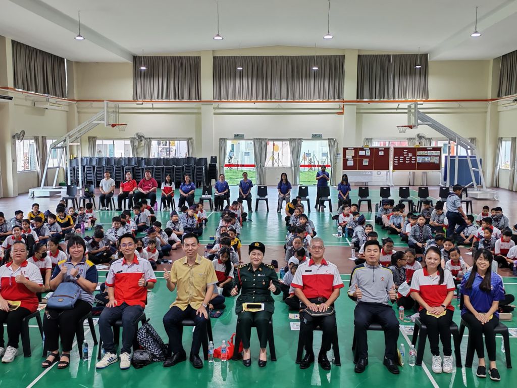 活动开幕礼由校董秘书长罗嵱惠先生代表校董会主席拿督蔡文铎律师出席并致辞。蔡主席因仍在回国途中未能亲临现场,特通过秘书长向全体师生致以问候与勉励。他在致辞中表示,举办一日营的目的,不仅是让学生走出课室,体验户外活动,更重要的是培养纪律、责任感与团队精神,这些都是制服团体精神的核心价值。他也勉励学生们在活动中勇于挑战、敢于承担,让服务与合作成为日常生活的一部分,成为未来社会的栋梁。校长杨鹙之女士表示制服团体的精神,不只是整齐的服装,更是一种责任感、服务心与团队精神的象征。希望大家能把今天的体验化为动力,在未来的学习与生活中继续发扬这种精神,成为有品格、有担当的新一代青年。
