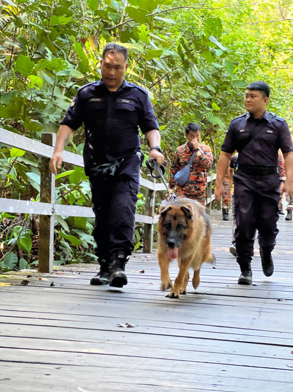 消防与拯救队伍指挥官奴鲁汀亲自率领10搜救人员入森林展开搜救工作,即朝着受困者透过手机Whatapps 应用程序发送提供的位置前进。