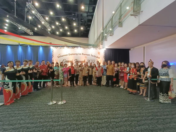 今日的达雅节开放日中,砂内阁成员、部长、副部长、部门官员、政府机构、商会、慈善机构与民众纷纷出席贺节。