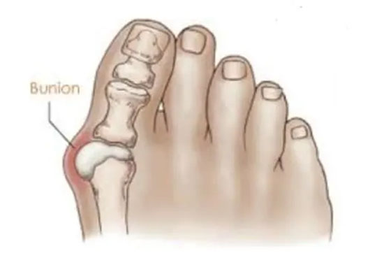 ●拇趾外翻会造成大脚趾根部的骨头突出、红肿发炎。