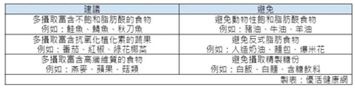 1. 正确饮食(Eating):遵循三多三避原则,改善、预防胆固醇过高的问题。