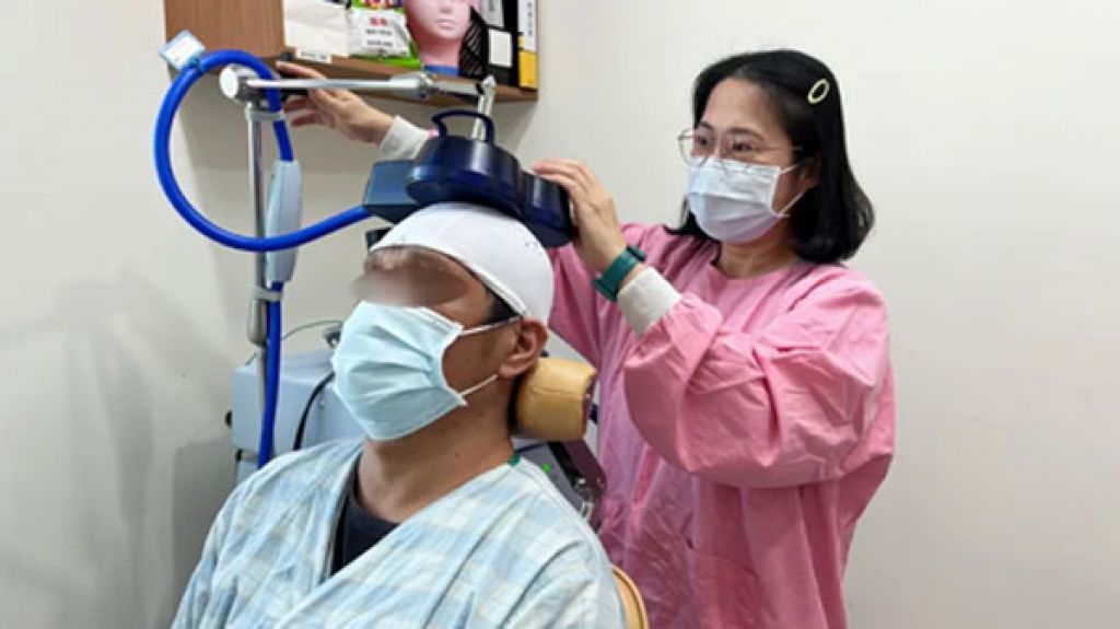 薛千川指出,重复经颅磁刺激治疗原本是用于忧郁症治疗,其原理是透过电磁感应的原理,通过线圈发送高强度电流,刺激并活化周边神经。他说明,这项治疗有改善大脑新陈代谢和神经突触活动的特性,因此临床上也被应用在脑中风后的复建治疗。