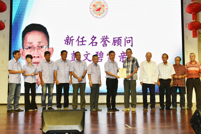 晚宴上亦颁发名誉会长、名誉顾问给卸任的前会长李伟城宗贤及前副会长彭文碧宗贤,以铭记他们对公会的付出与贡献,与此同时,我们也颁发各区代表委任状给各区的代表,包括新委任或原有的区代表,分别为斯里阿曼区本曼查李祥禾、拉招区本固鲁李冬仙、17哩新生村区彭燕辉,李松生、新尧湾区李顺波、马当区李剑敏、李永富石隆门区李伟明、短廊区李优烈校长。以屡新他们为公会承担的义务与职责。