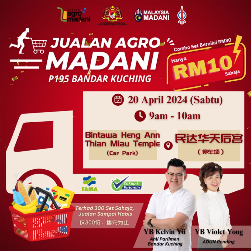 昌明农业市集 4月20日民达华天后宫停车场 16 04, 2024 登载于 砂拉越 古晋市国会议员俞利文的服务中心将来临周六早上,在民达华天后宫停车场设立"昌明农业市集"。 (古晋16日讯)古晋市国会议员俞利文的服务中心将于4月20日(星期六)早上9时,在 民达华天后宫停车场设立"昌明农业市集(Jualan Agro Madani)",欢迎公众到來选购。 俞利文的服务中心分别于去年杪和今年初,在选区上多个地区先后设立昌明农业市集,每一场活动都获得当地民众踊跃响应,不到一个小时就全数售罄。 这项市集是与联邦农粮销售局(FAMA)共同联办,活动限供300份超值食物套装,现场采以排队制先到先得,售完为止。 更多相关: « 中国暨南大学华文教育本科专业奖学金 古晋慈云佛教正信会主办一系列活动 为欢庆佛历2568卫塞节 »