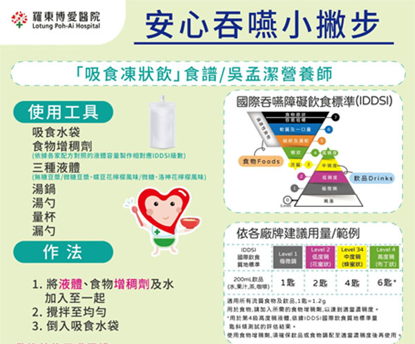 吴孟洁提供照护家属可自制“吸食冻状饮”的食谱,以及让病人安心吞咽的小撇步: