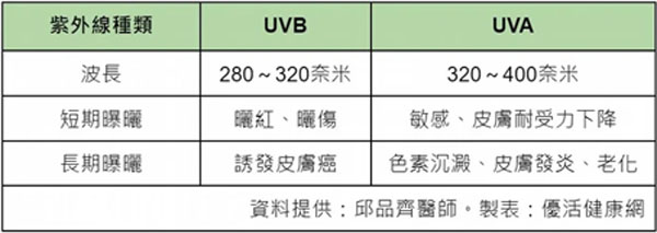 美之道皮肤科诊所院长邱品齐表示,防晒的主要作为防止皮肤直接曝晒于紫外线,其中,紫外线B光(UVB)和紫外线A光(UVA),分别会穿透并伤害皮肤的表皮层和真皮层,长期曝晒会造成皮肤老化、长斑、晒红、晒伤,加速皮肤色素沉淀。若不做好防晒措施,罹患黑色素癌的风险甚至比起有防晒者高出2倍。