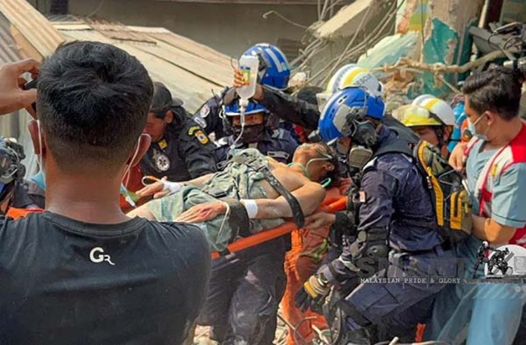 (吉隆坡3日讯)马来西亚特别灾难援助和搜救队(SMART)周三在缅甸实皆省展开搜救行动,成功在废墟下寻获被困72小时的幸存者。