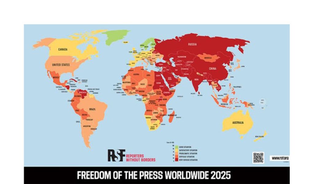 (吉隆坡3日讯) 无国界记者组织(RSF)配合5月3日世界新聞自由日,发布2025年度世界新闻自由指数(World Press Freedom Index)排名,大马在180个国家和地区中跃升19位,排名第88位。