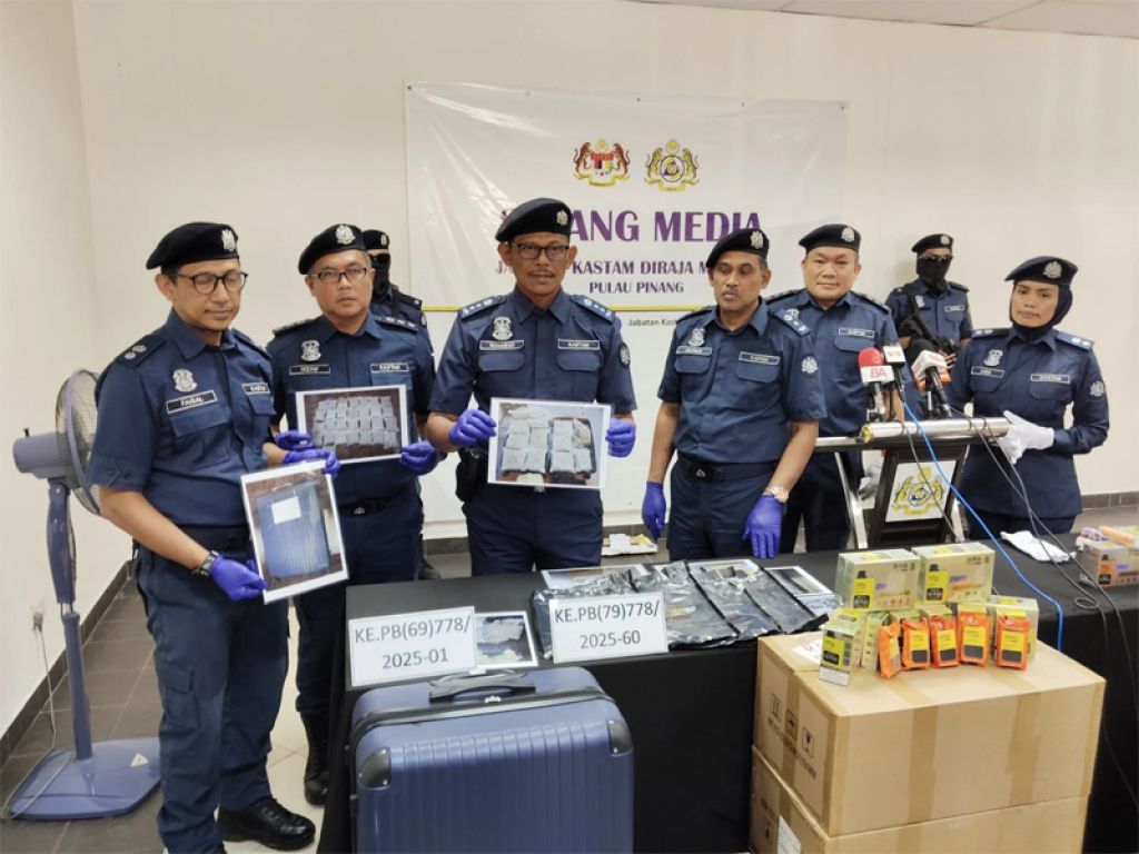 (北海5日讯)机场行李箱及邮件包裹藏毒被侦破,槟关税局充公总值180万7708令吉的大麻花。