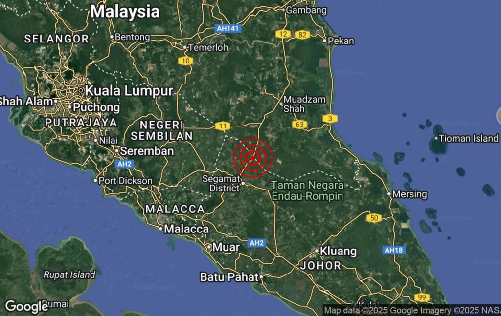 柔佛州昔加末今日凌晨4时许再次发生3.4级地震