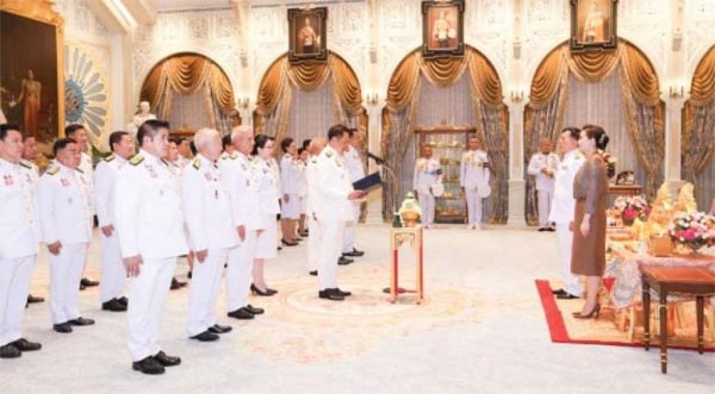 (综合25日电)由阿努廷担任首相兼内政部长的泰国新一届内阁24日傍晚在曼谷律实宫觐见泰国国王哇集拉隆功,在御前宣誓就职。