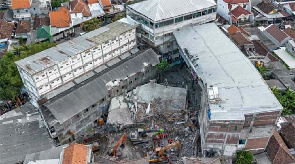 印尼学校倒塌事故 已累计寻获54具遗体 06 10, 2025 登载于 国际 印尼学校倒塌事故,已累计寻获54具遗体。 (综合6日电)印尼爪哇岛一所多层校舍日前发生坍塌事故,搜救人员至6日已累计寻获54具遗体,仍有10余人失踪。 上述位于东爪哇省诗都阿佐县的宗教寄宿学校于9月29日坍塌,当时有近百名学生在集体祈祷。 当局6日说,希望今天能够完成搜寻工作,并将遗体归还家属。 更多相关: « 失明 腎衰竭 昏迷 巴西假酒中毒蔓延16州 中国国庆上门喂养需求激增 最高9天赚近5千令吉 »