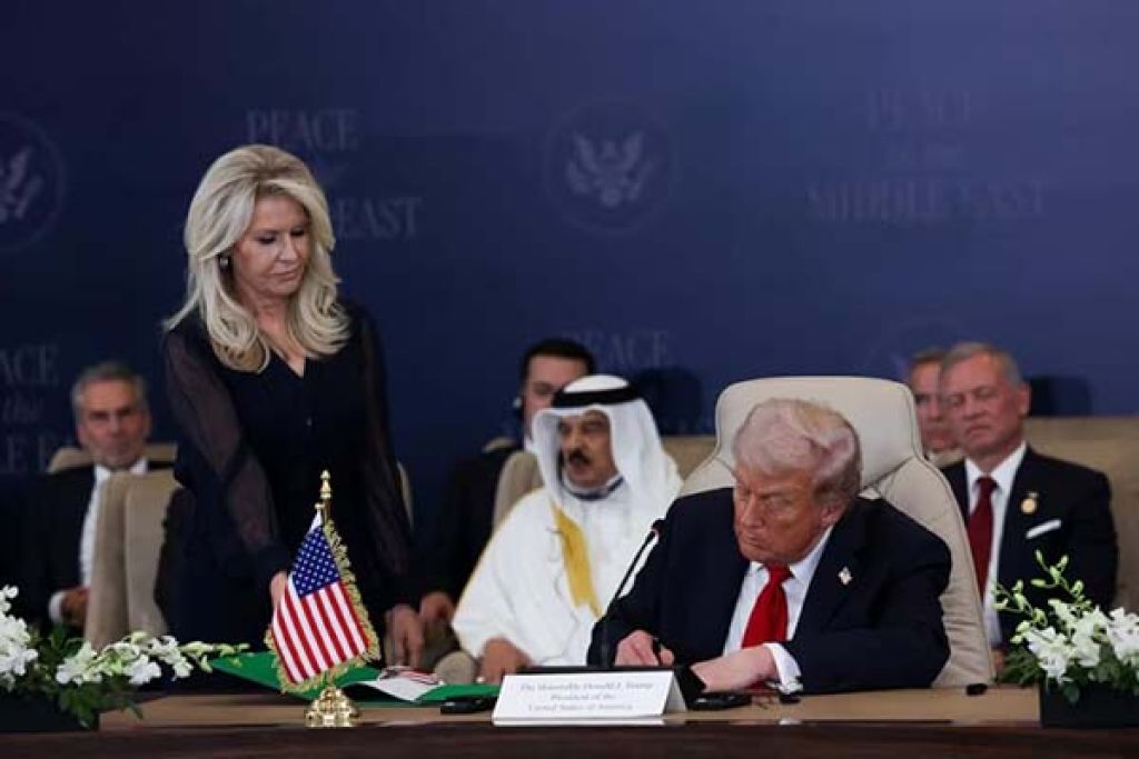 法新社报导,特郎普闪电访问以色列,在国会发表演说时盛赞以色列总理内坦尼亚胡的坚定领导,随后飞往埃及红海城市夏姆锡克出席加沙高峰会。特郎普与埃及、卡塔尔和土耳其领袖共同签署《加沙宣言》,成为协议保证方之一,会场聚集超过20位国际与区域领袖。