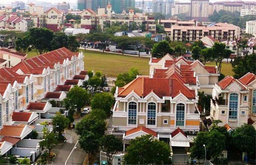 (综合23日电)新加坡民众热中于投资房产,房屋自有率高达91%。图为当地高级住宅区。