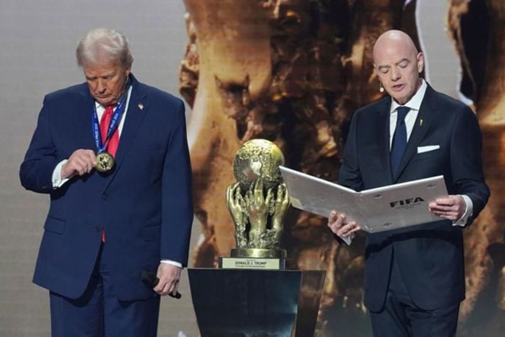 (综合6日电)美国总统特朗普6日出席2026世足赛(FIFA)抽签大会,抱回1座和平奖,这是上个月设立的全新奖项,称为“国际足总和平奖”。FIFA主席英凡提诺大力鼓吹“足球带来和平”的概念。