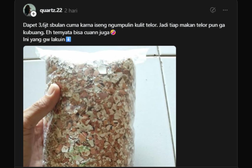 根据《KOMPAS》报导,印尼日惹古农基杜尔一名50岁男子瓦卢约,便成功将废弃蛋壳转化为每月高达360万印尼盾(约883令吉)的稳定收入,其励志故事近日在社交媒体上引发广泛关注。