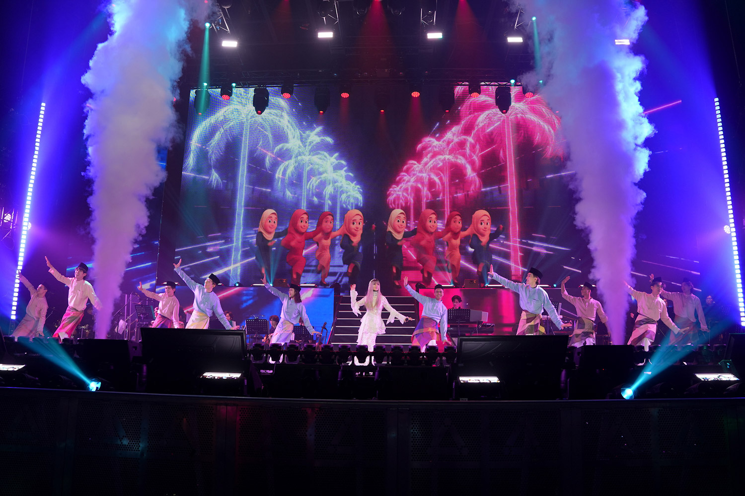 演唱会中段迎来重量级惊喜——马来乐坛资深天后 Fauziah Latif 现身,全场瞬间沸腾。两人首先合唱经典歌曲《Tak Terpisah》,两把实力派嗓音层层交织,情感浓烈而深刻,让观众完全沉浸其中。随后,她们再度携手演绎马来经典《Dia》。钟洁希透露,这首歌正是 Fauziah Latif 一直希望能在舞台上与她合唱的作品,这次终于在《我就是我》演唱会上圆梦,也成为当晚最温馨、最具纪念价值的时刻之一,把这份"第一次"献给粉丝。