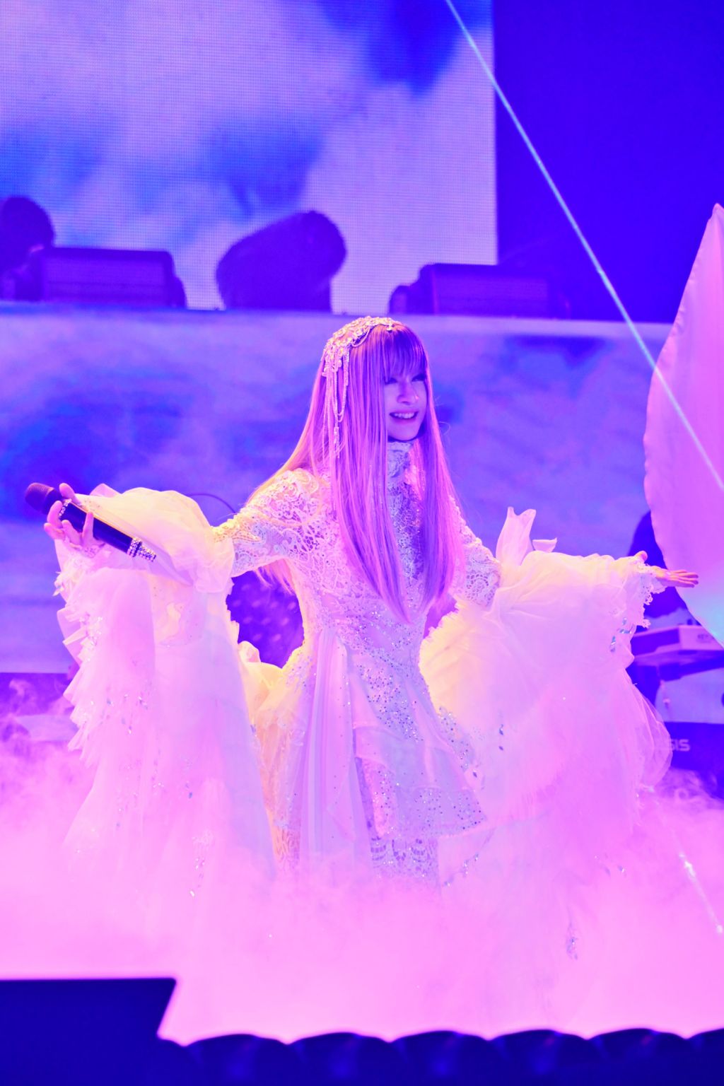 当晚,她与《没有泪天空》话剧男主角合唱《世界最后最美的地方》,并深情表示:"马来西亚就是最好的地方。"简单一句话,瞬间点燃全场共鸣。此外,她特别选唱日语歌曲《恋人》,献给特地从日本远道而来的歌迷,歌声响起的那一刻,全场氛围变得格外温柔,情感在音乐中静静流动,感动直达心底。