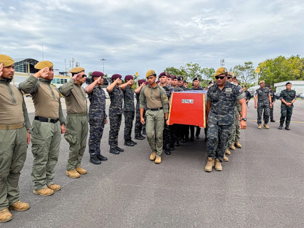 (斗湖23日讯)昨日在潜水训练中不幸身亡的“69特种部队”(69 Komando)分队指挥官凯里尔阿扎警长,其灵柩于今日由大马皇家空军C130运输机,从沙巴斗湖运返霹雳州务边家乡,送别英雄最后一程。
