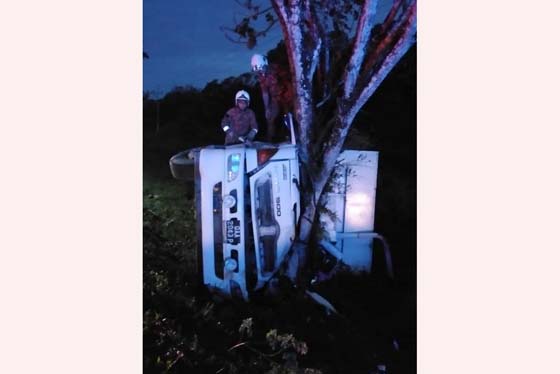 从古晋运载鸡蛋往美里 罗厘撞大树翻覆夺两命 09 01, 2020 登载于 大马首题 (诗巫9日讯)一辆从古晋运载鸡蛋前往美里的罗厘,在诗巫巴拉当路,疑是驾驶失控,撞向路边大树,司机与跟车员当场丧命。 这起夺命车祸是今日凌晨约3时到5时之间,在巴拉当路通往诗巫方向的路段发生。 当地消防与拯救局于凌晨5时48分接到通报,先后与交警、医院医务人员赶抵现场施救。 据悉,罗厘撞上路边的一棵美化树而侧翻,罗厘驾驶员及跟车员都已丧生,卡在损坏不堪的车座内。救援单位出动吊车将罗厘吊起,将2名死者遗体取出,由警方黑车送往停尸房。 罗厘卡在树身,动弹不得。 更多相关: « 美民沿海大道园丘食堂大火 两华裔男子烧成焦尸 “蓝魔行动” 砂13毒警停职 »