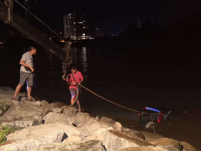 鉴于当时适逢涨潮,河口潮水汹涌,不宜进行搜救工作。消拯局潜水员在岸边苦等了3个小时,到将近午夜潮水开始撤退,才根据目击者线索迅速下潜所鉴定的位置,把司机从车内中救出,只可惜司机已无生命迹象,返魂乏术了。