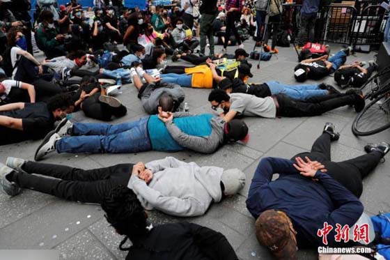弗洛伊德去世后,全美多地掀起了大规模的抗议活动。在首都华盛顿的一次抗议活动中,数百名示威者躺在特朗普酒店前热浪滚滚的柏油马路上,在8分46秒内齐声高呼“我无法呼吸”的口号,振聋发聩。