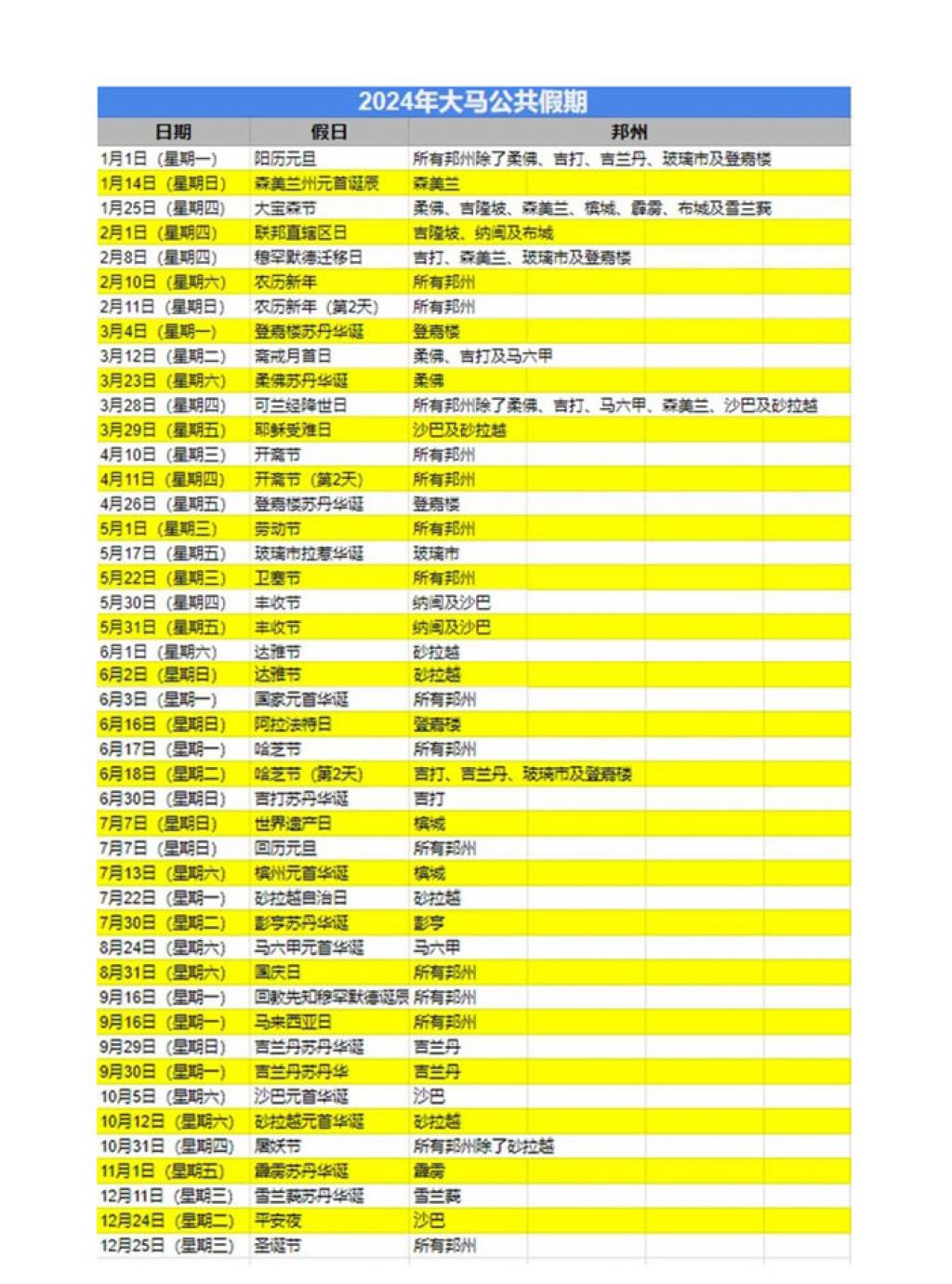 (吉隆坡2日讯)2024年马来西亚公共假期表出炉!