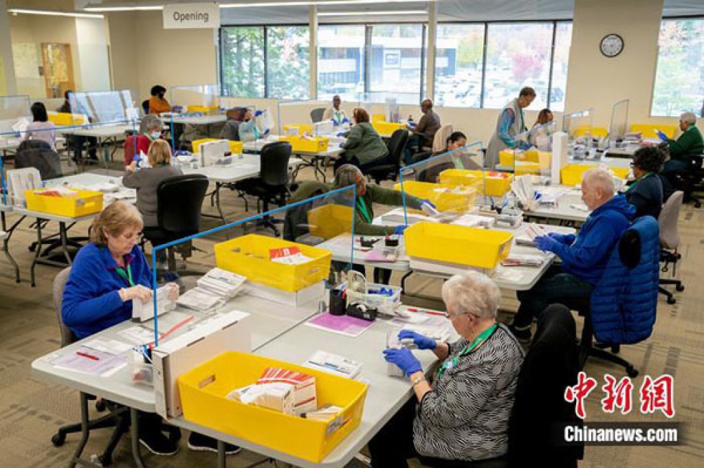 当地时间2024年10月28日,美国华盛顿州伦顿,选举总部计票过程持续进行。 当地时间2024年10月28日,美国华盛顿州伦顿,选举总部计票过程持续进行。