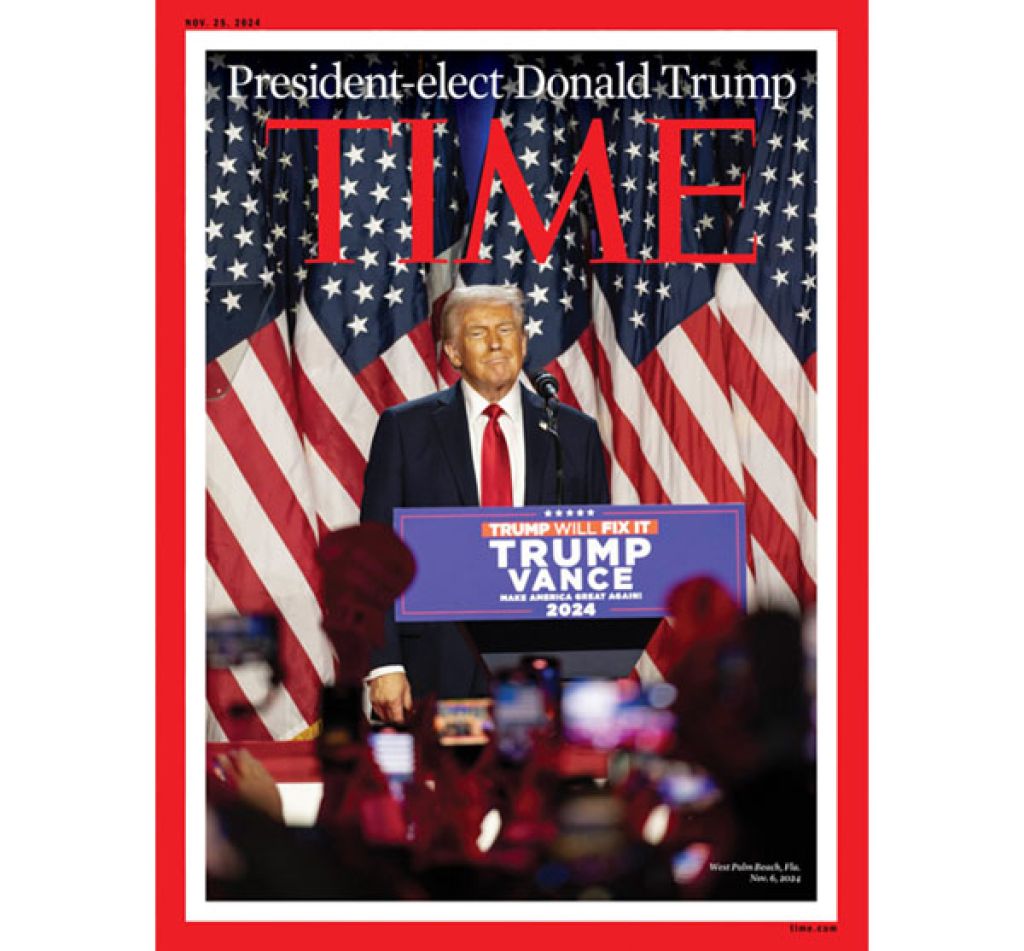 《时代》在公布11月封面的贴文中写道,“特朗普的胜利对于那些忠于让美国再次伟大的人们而言,他重返白宫是一幅令人振奋的前景。对于那些帮助他登上颠峰的支持者而言,他的言论夸夸其谈,很大程度上是为了改革一个与美国经济及社会需求脱节的政府。对于美国其他地方及世上大部分地区,特朗普的第二任期,看起来像是对于美国与其他地区的民主打击。”