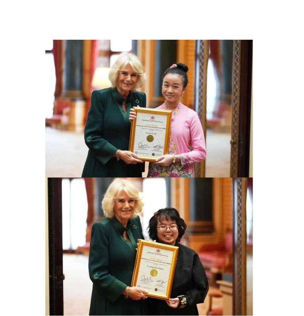 (吉隆坡22日讯)2024年英联邦女王作文竞赛(QCEC)高级组和初级组的冠军得主,昨日在颁奖礼上与英国王后卡米拉见面,并接领证书!
