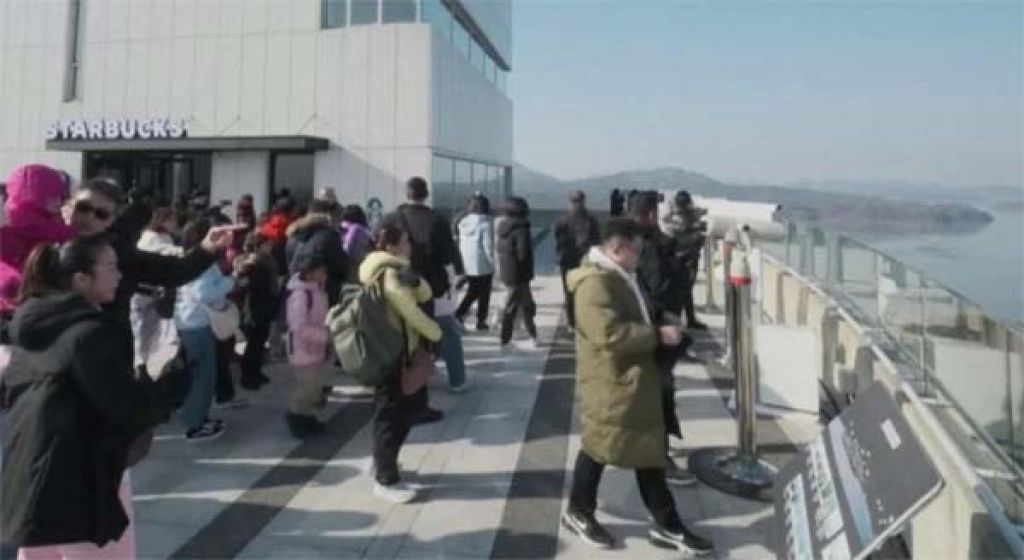 瞭望台距离朝鲜领土不到1.6公里,可俯瞰朝鲜的松岳山与附近开丰郡乡村。星巴克的桌子和窗户面对朝鲜,当天开幕约有40人上门光顾,其中一些顾客是外国人。