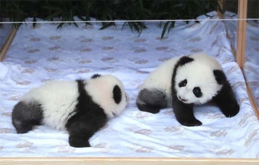 出生满百天 旅德熊猫取名“梦好”“梦甜”