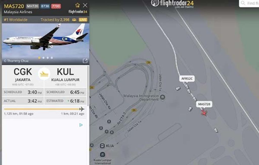 这架MH720班机是在当天下午3时40分从雅加达起飞,预计在6时45分抵达吉隆坡机场。