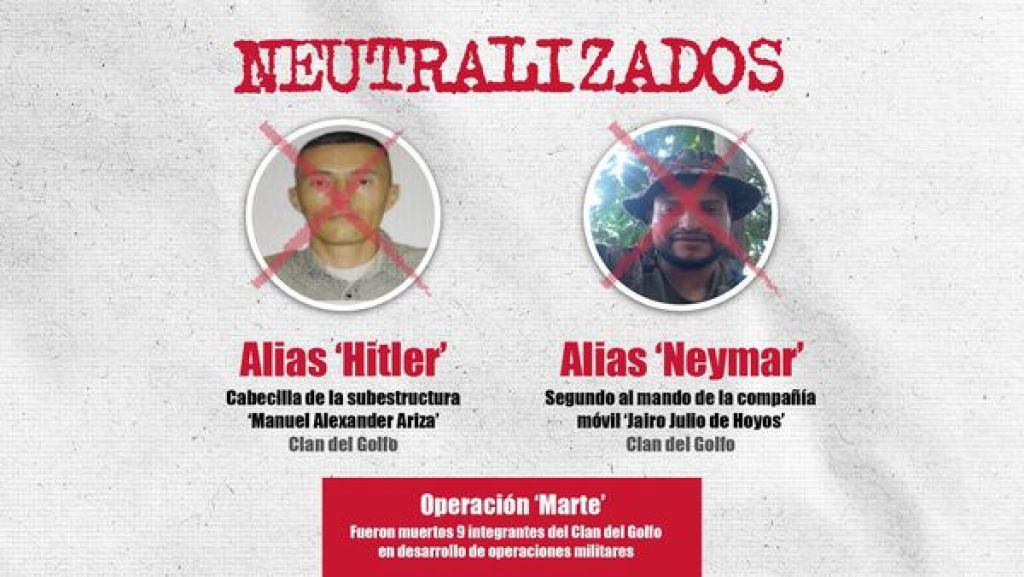 综合CNN等外媒报导,裴卓证实,在这起行动中死亡的海湾帮成员包括其绰号为希特勒的领导人罗萨里奥,以及副手德霍约斯,绰号内马尔。这起军事行动于Arenales和Montefrio村庄展开,由哥伦比亚陆军和航空航天部队联合执行。