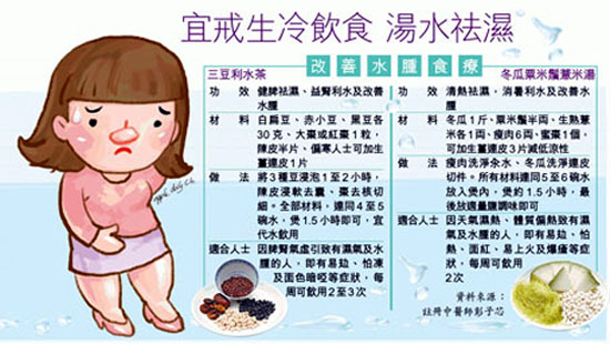 爱靓女士最怕水肿,一觉醒来觉得自己面部及四肢浮肿,甚至裤头变紧,分不清是肥了还是肿了?或是身体有湿气水肿的表现。中医师表示,有水肿的女士最忌嗜生冷饮食及衣着太暴露,或洗头后没有尽快吹干头发与夜睡,随时加剧身形水肿问题,建议可煲祛湿汤水饮用,并要调节生活习惯,有助改善水肿。