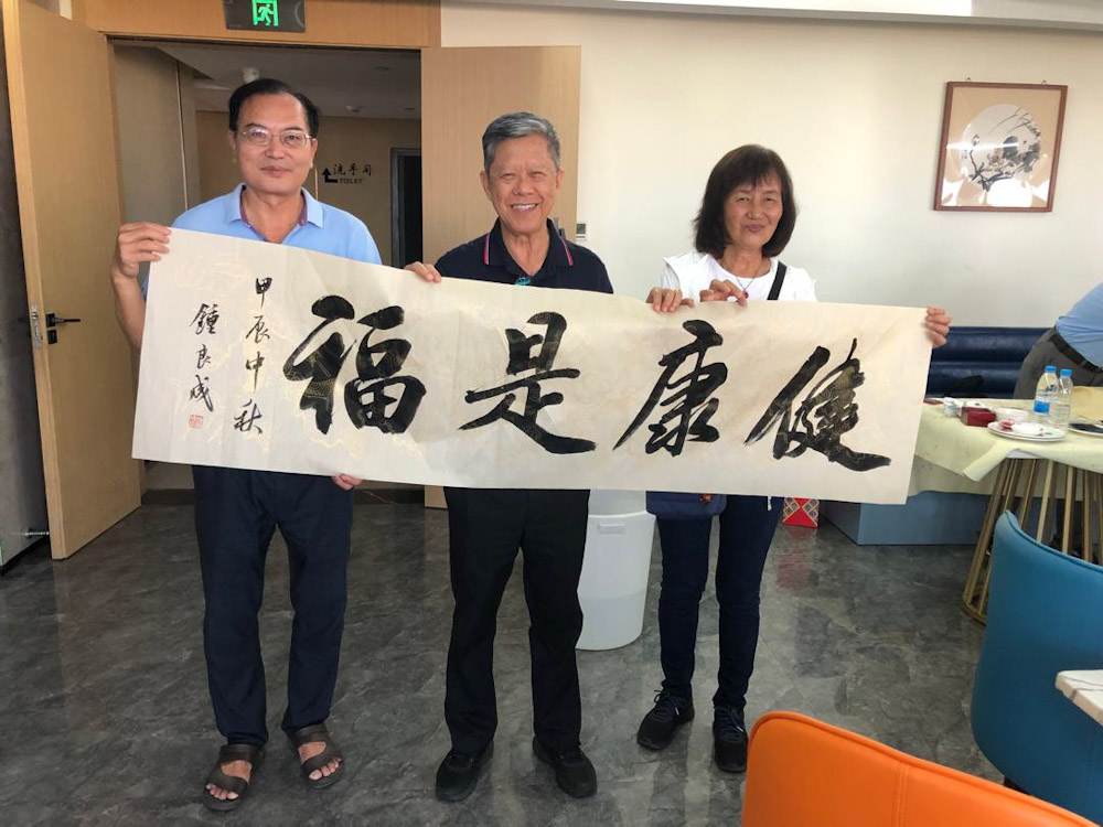午餐后大家回酒店休息,下午三点半,在诏安书画家钟良成先生的安排下,来了八位书画家,现场挥毫泼墨,体现诏安书画之乡的风采,团员们喜得墨宝,实属难得。