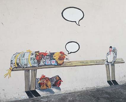 由于“纸包鸡”太具有创意和特色,在中央市场的一面墙上也绘上了“纸包鸡”的壁画,成了诗巫其中一个吸睛的景点。