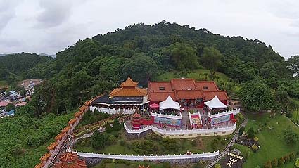 笔者在古晋居住期间曾乘车前往参观青山岩,从古晋市中心出发,沿着21公里长柏油公路,约40分钟便抵达,从山脚拾阶而上,浏览全景,然后逐殿观赏,印象颇深。其特点有三:神庙座落于马来族为主的村落;青山岩的建筑和风格有着浓郁的中华传统色彩;理想的游览胜地。