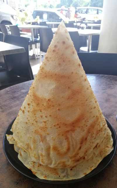 其中一种印度飞饼像金字塔,我们称它为“纸巾飞饼”--Roti Tissue,它脆脆的、甜甜的、香香的,是個能讓人吃了心情愉快的食物。
