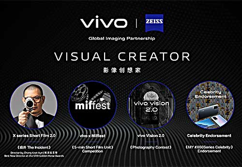 此外,vivo将于4月开启第二阶段的“影像创想家”活动,联手“马来西亚国际电影节”(MIFFest)主办以“人文之悦”(Joy of Humanity)为主题的“5分钟短视频比赛“,欢迎有参赛者使用X60 Pro进行拍摄。同时,此活动竞赛也邀请了三位大马导演以及本地大学一起启动这项活动,分别包括厦门大学马来西亚分校(Xiamen University Malaysia)丶拉曼大学学院(TAR UC)以及新纪元大学学院(New Era University College)。