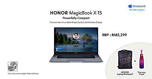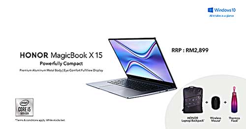HONOR MagicBook X 15价格仅从RM2,299起,非常适合父母购买作孩子上网课的笔记本电脑。配合Shopee 7.7 促销期间,凡购买HONOR MagicBook X 15 i5处理器将获赠笔电背包、无线蓝牙滑鼠以及保温瓶;而购买HONOR MagicBook X 15 i3处理器则将获得笔电背包和保温瓶。