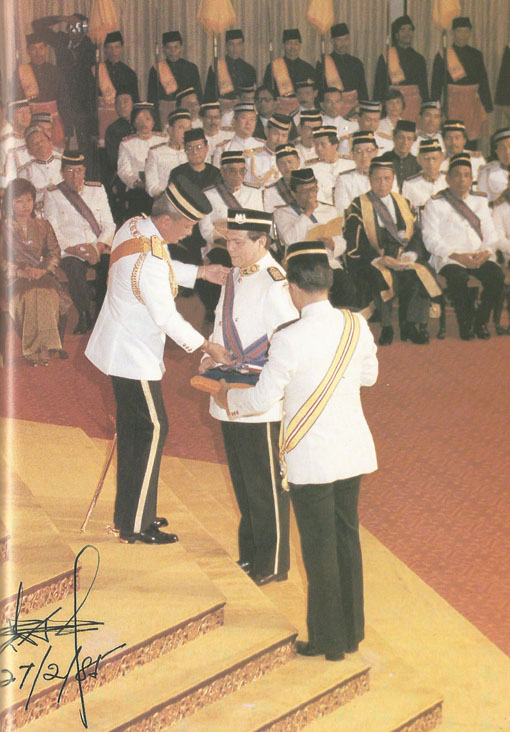 他非但与联邦和州政府领导人的私交密切,也和中国最高领导层关系良好,正因为他为国家、社会付出了众多贡献,在1978年时,获得沙巴州元首颁赐“拿督”勋衔,并在1984年荣获最高元首封赐“丹斯里”,1993年再获得本州州元首敦阿末再迪颁赐“拿督阿玛”荣衔。